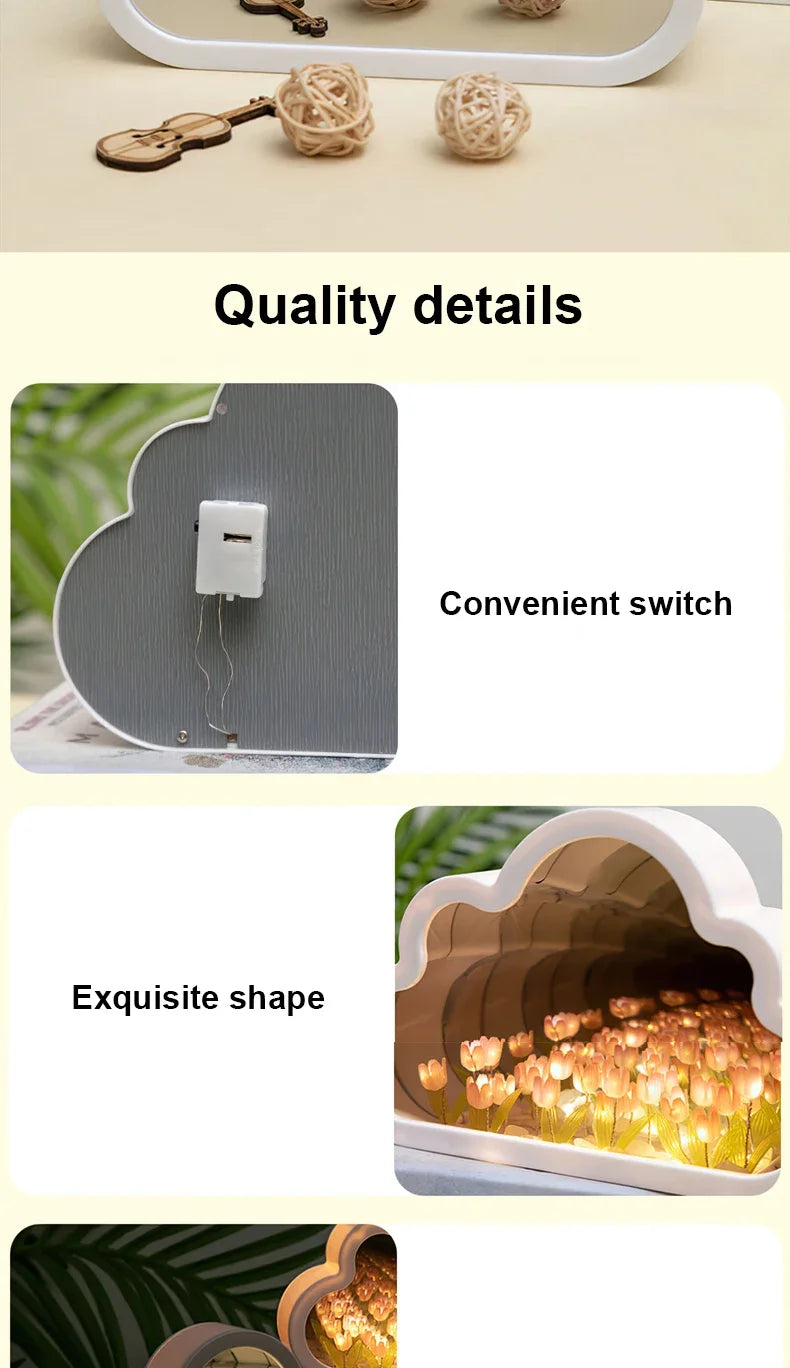 Lampada a tulipano fai da te, lampada a specchio con tulipani, luce notturna a forma di nuvola, regalo di compleanno, lampada a LED con fiori, decorazione per camera da letto