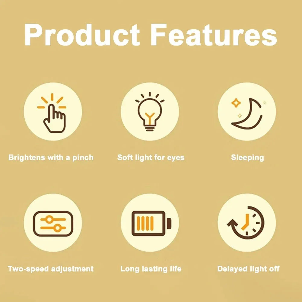 Features: Light Up With A Light Pinch, Delayed Light Off